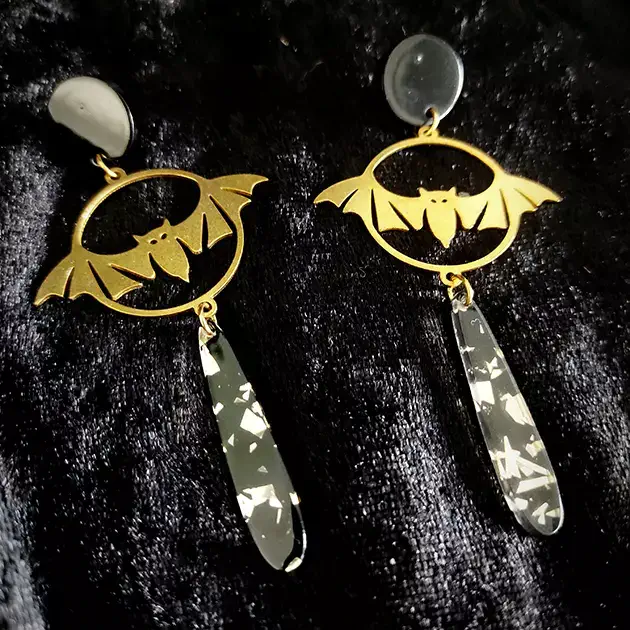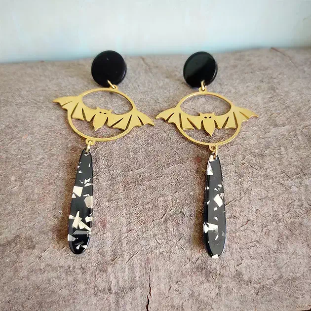 Matières utilisées : tige en acier inoxydable, résine noir et/ou pailleté et laiton