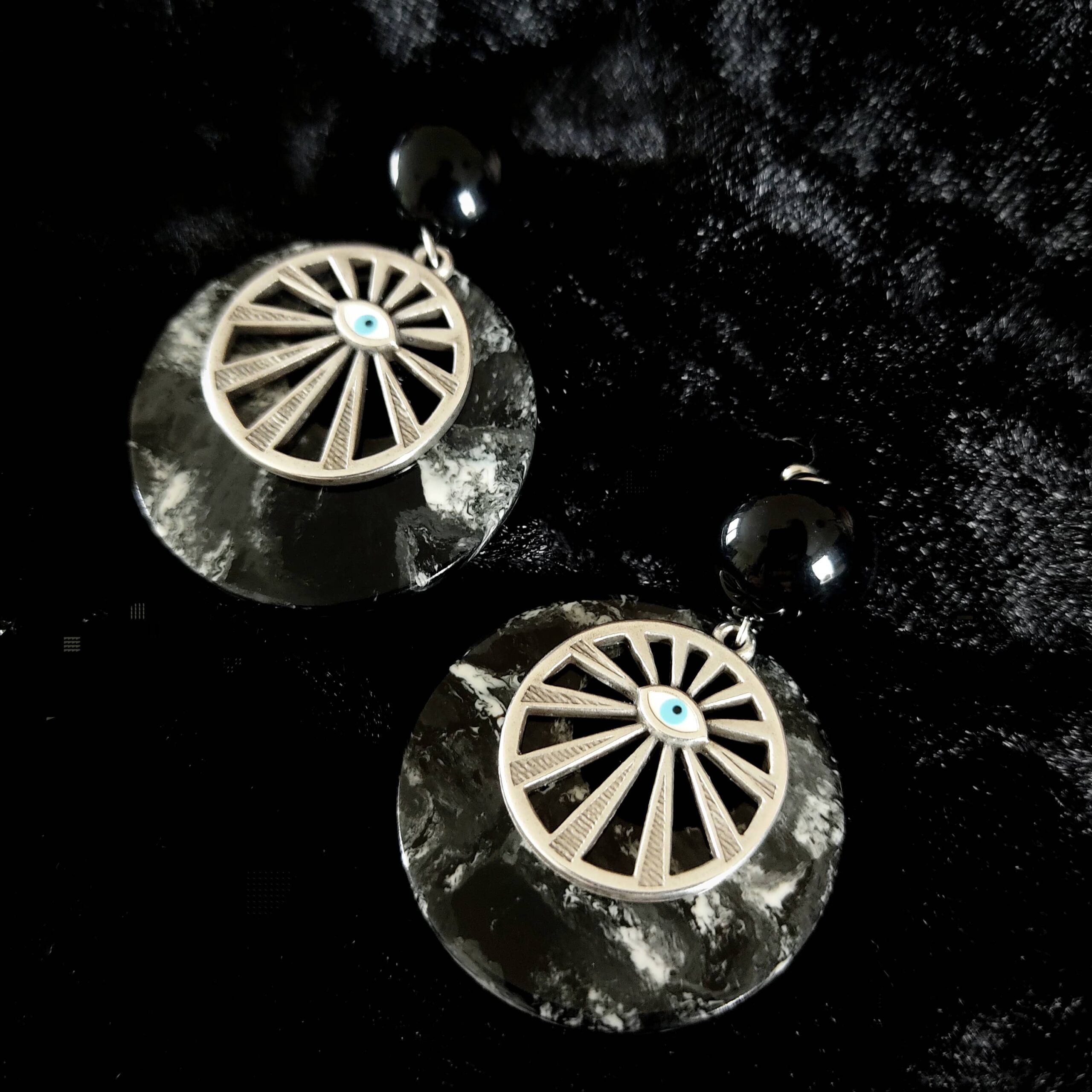 Matière utilisée : résine – acrylique – métal argenté et tige de la boucle en acier inoxydable
