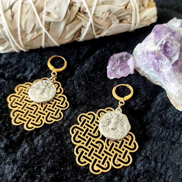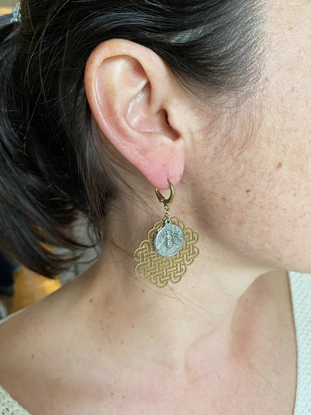 Boucles d’oreilles abeilles et motif géométrique