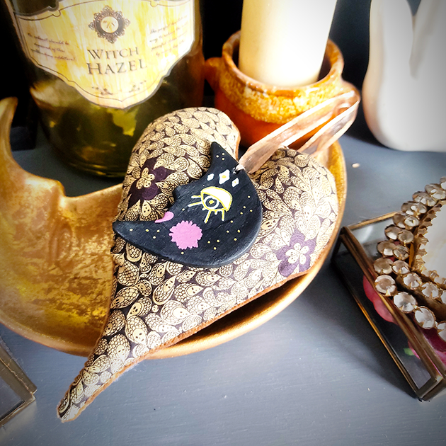 – La lune est en argile, fabriqué et peint à la main dans mon petit atelier